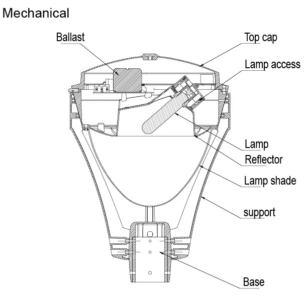 Lamps: HID (HPS MH)/ LED bulb / CFL lamps, 20W-70W