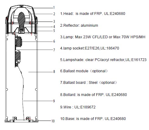 Type: FRP Bollard lighting