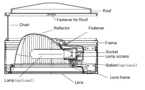 Roof ,lens frame & reflector: Fiberglass-reinforced plastics,excellent